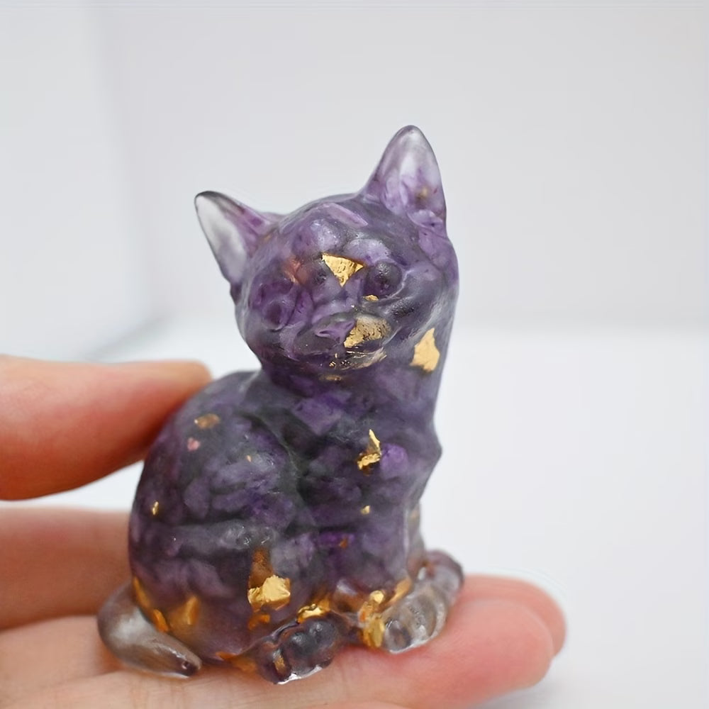 Chat Assis en Résine & Améthyste | Grand