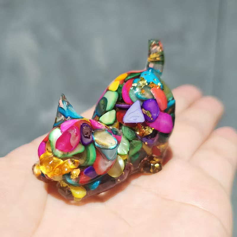 Chat Enjoué en Résine & Arc-en-ciel
