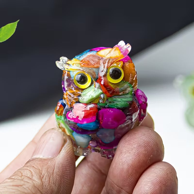 Hibou en Résine & Arc-en-ciel | Petit