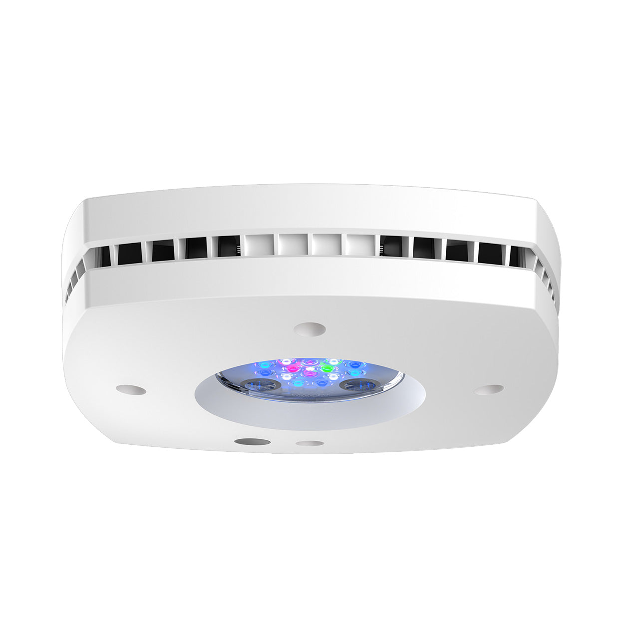 The durable and slender Prime Tank Mount is designed to offer adjustable tank mount solutions for this unit to ensure proper illumination across the entirety of your aquatic ecosystem. Options such as a suspended hanging kit and a silicone coated flexible gooseneck arm are also available for alternative mounting. Proper light spectrums are essential for healthy and prolific coral growth, and the AquaIllumination Prime 16HD Reef Lighting System boasts a trusted color mixture for full spectrum availability. The standard, custom designed TIR lenses provide unmatched balance of power and spread, hitting depths of up to 24 inches and a 90% optimal efficiency. Comes in an attractive white color and sports an output of 55 watts.