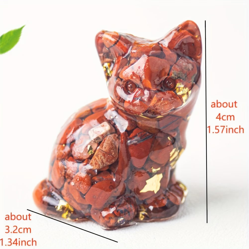 Chat Assis en Résine & Jaspe Rouge | Petit